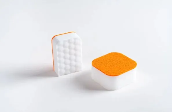 Tight spots hold grime that rags can’t touch. A small melamine sponge with a non-woven layer slips into these areas, leaving them clean as a whistle.