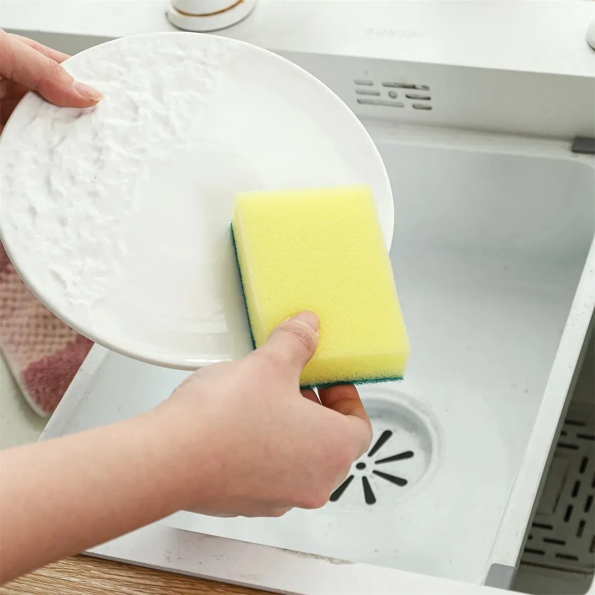 The Dual Layer Kitchen PU Sponge combines polyurethane foam with scouring pads to create a durable product that provides controlled abrasion for kitchen hygiene maintenance.