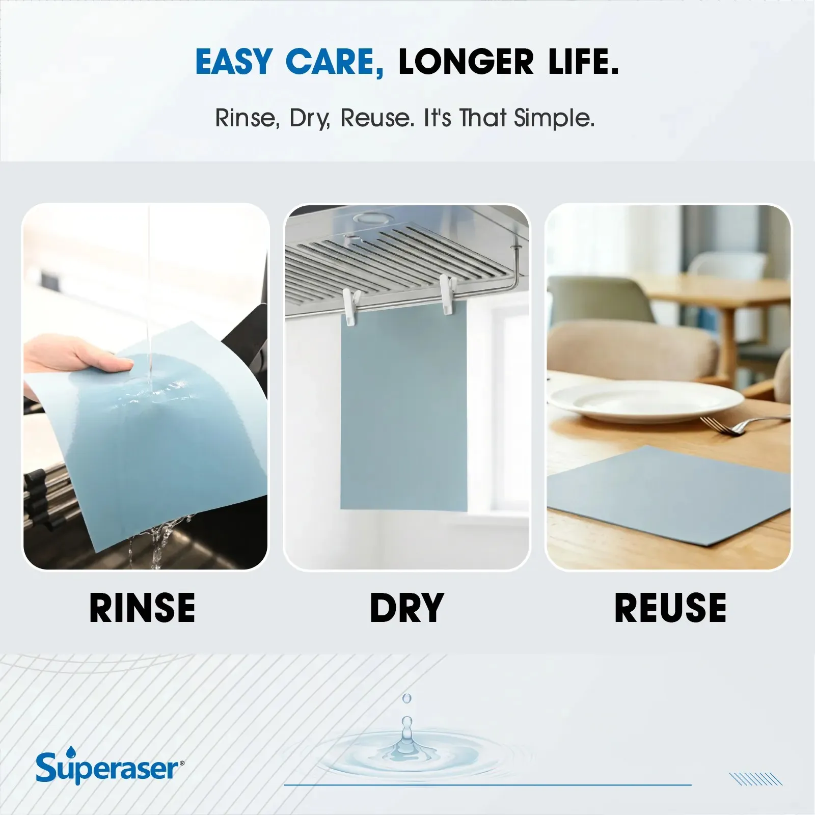 Usual green pads hold grit that acts like rough paper. Items like Superaser Multi-Purpose Melamine Cleaning Sponge clean deeply with water alone, and they protect cookware from harm by chemicals or friction.
