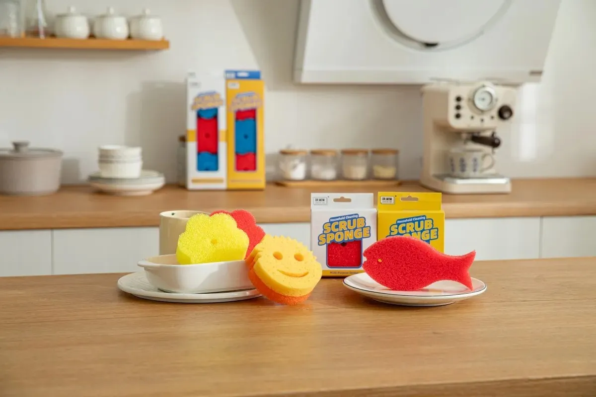 The Temperature-Sensitive Scrub Sponge uses special polymer foam that shifts with water heat, giving a two-way clean that delivers solid scrub in cool water and soft soak in hot, suiting different kitchen spots well.