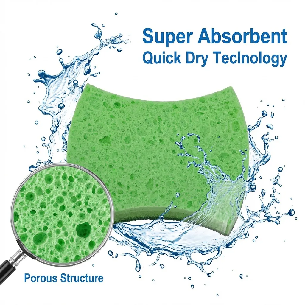 Rapid Absorbency: High-performance fiber structure that outperforms standard synthetic sponges.