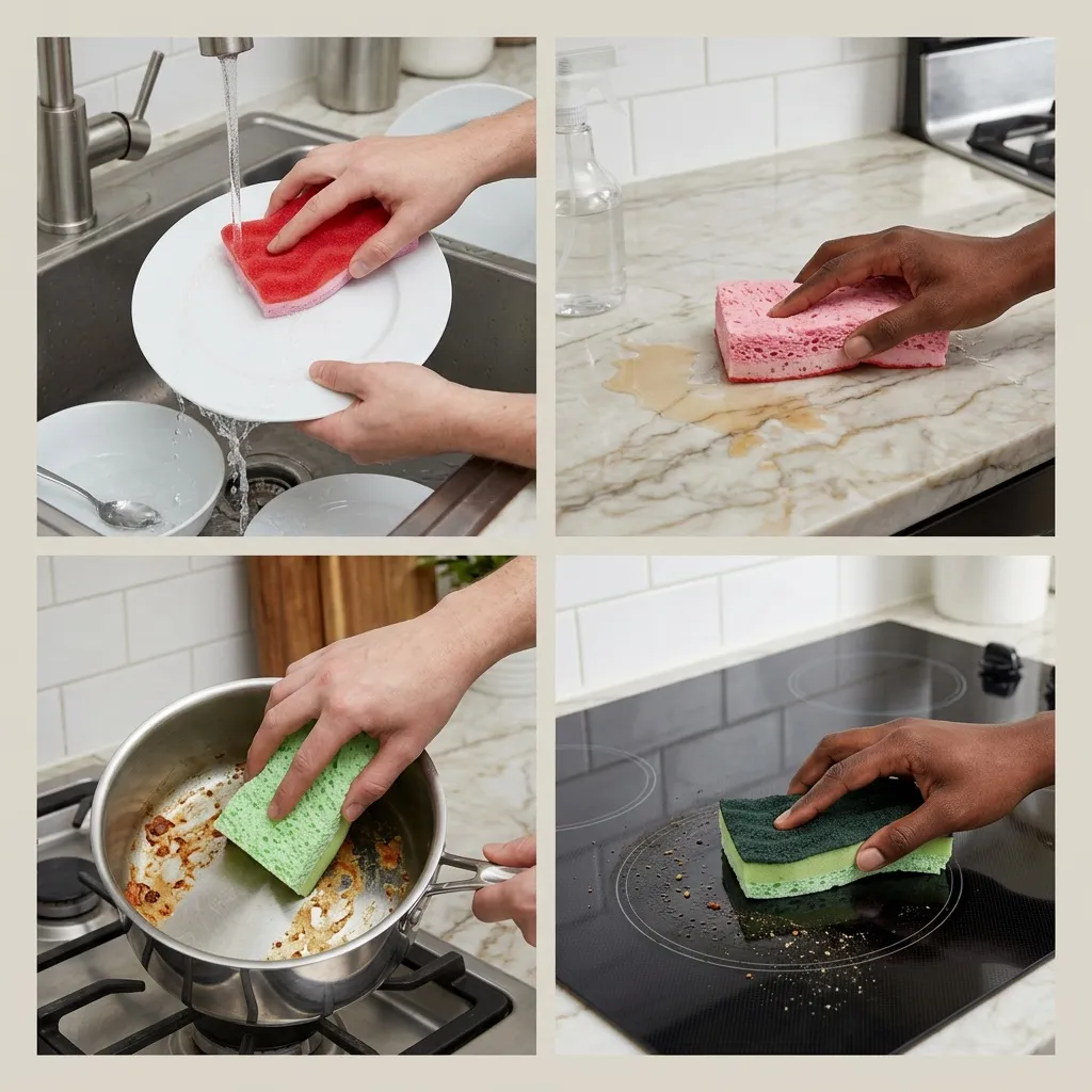 Advanced 3-Layer Design Top Layer (Natural Pulp): Soft, non-abrasive, and safe for non-stick cookware, ceramic dishes, and glassware. Middle Layer (High-Elastic Sponge): Ultra-absorbent, locking in water and soap to reduce scrubbing effort. Bottom Layer (Scouring Pad): Tough, non-scratch grit cuts through grease, burnt-on food, and grime without damaging surfaces. Long-Lasting Durability Ultrasonic bonding technology ensures layers stay bonded even after 1000+ scrubs. Withstands high-temp water and heavy use without delaminating. Eco-Friendly & Reusable Made with natural pulp and recyclable materials, this sponge is reusable, quick-drying, and reduces waste from disposable cleaning tools. Multi-Surface Versatility Perfect for dishwashing, cookware cleaning, countertop scrubbing, and sink maintenance—one sponge replaces multiple kitchen tools. 🧼 How to Use Wet the sponge to activate the high-elastic middle layer for maximum water retention. Choose the right layer for your task: use the natural pulp side for delicate surfaces, or the scouring pad for tough grease. Rinse thoroughly after use and air dry to maintain freshness and extend lifespan. 🎯 For Home & Business Ideal for homeowners, busy families, and professional kitchens. We offer factory-direct wholesale pricing, custom branding, and bulk order support for retailers, distributors, and foodservice businesses. 🛒 Upgrade Your Kitchen Cleaning Ditch the flimsy, single-use sponges and switch to a durable, multi-layer solution that works as hard as you do.